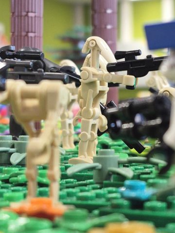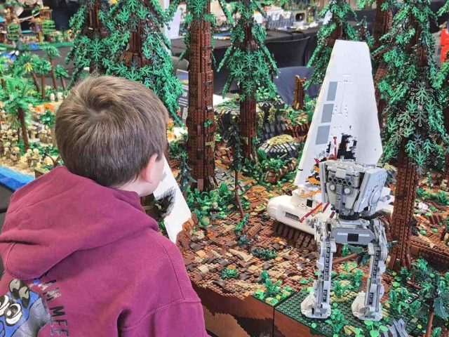 Neben einem eigenen Harry Potter-Bereich gab es auch viele andere MOCs zu bestaunen. Hierzu zählten unter anderem ein Wild-West-Dorf, ein paar Mittelalter- und Eisenbahn-Mocs und verschiedene Mosaike. Hightlights waren für Frederik natürlich die großen Star Wars Mocs. Beim Ausstellerabend gab es ein paar Sets zu ersteigern, außerdem verschiedene Bingos. Leider haben wir nichts gewonnen, Frederik durfte aber bei der Verlosung auf der Bühne helfen.