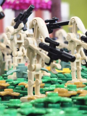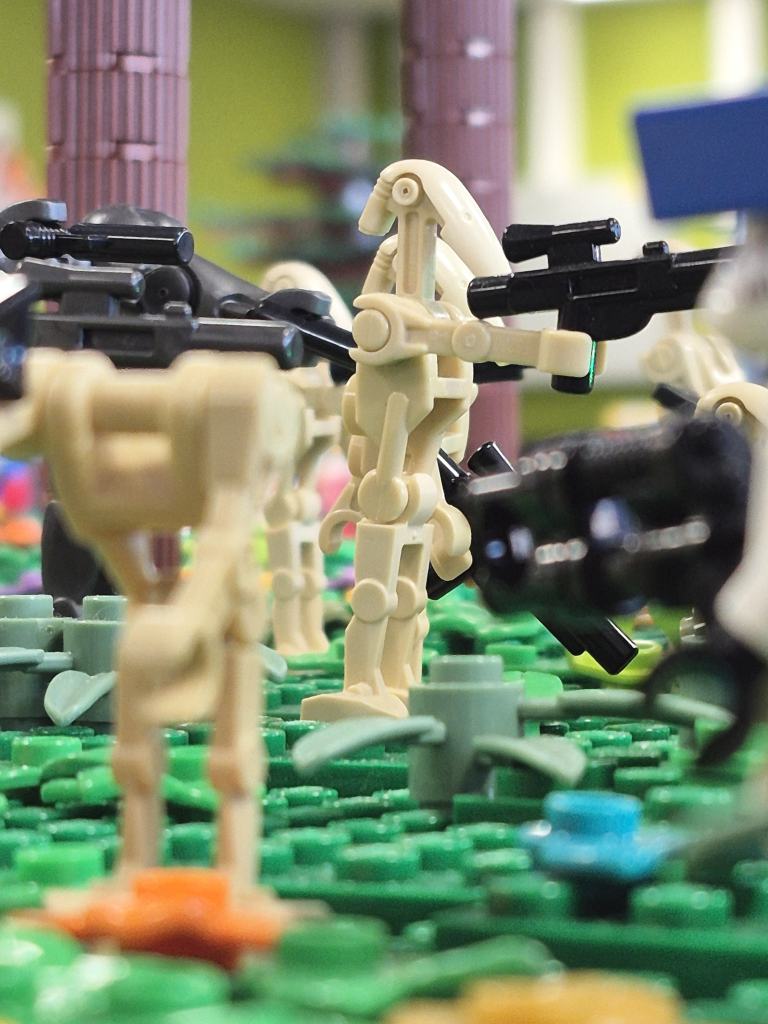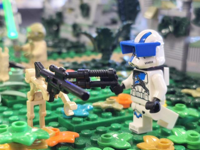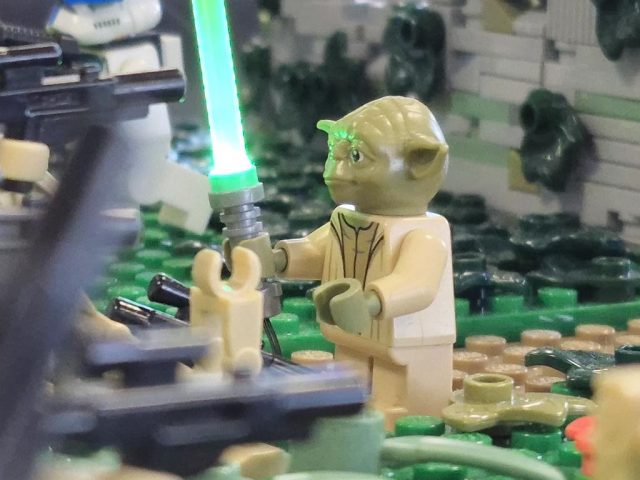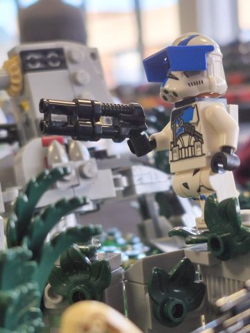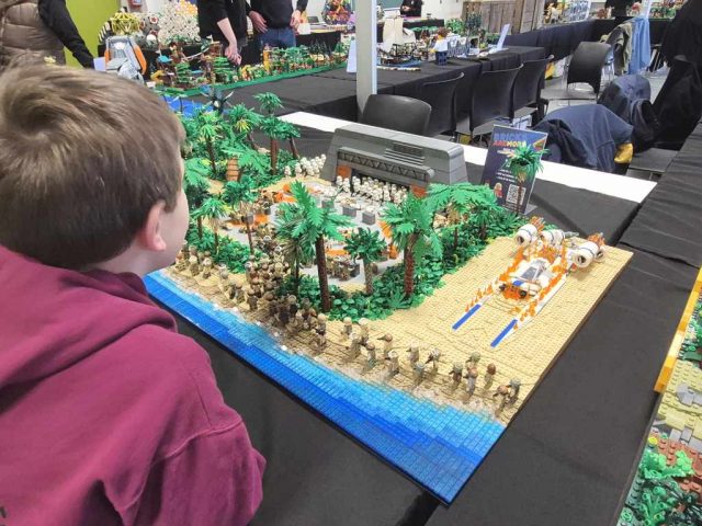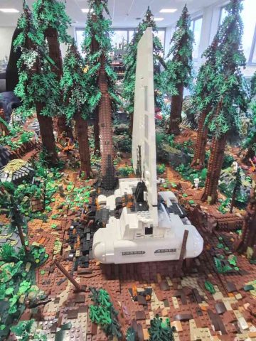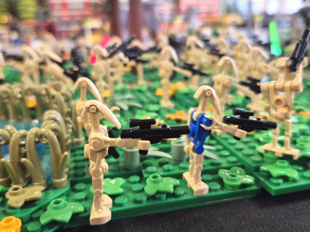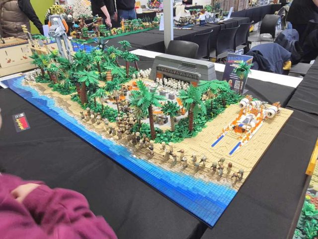 Jan hatte das erste Mal die Harry Potter Bücher von sich und Anja dabei. Insgesamt sind es, jetzt wo sie fertig sind, knapp 130 Mocs geworden. Die komplette Länge der Modelle beträgt über 25m und ist dann doch sehr beeindruckend. Frederik hatte seine Star Wars Landschaft dabei, die auch sehr gut ankam.