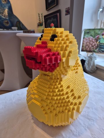 Am 14. und 15. September fand im Buxtehuder Kulturforum die 2. Auflage der Bricks Ahoi statt. Die Ausstellung findet alle 2 Jahre statt und wird auf private Initiative in Zusammenarbeit mit dem Kulturform Buxtehude veranstaltet. Auf Wunsch des Veranstalters brachte ich meinen Eisbären und meine Quietsche Ente in XXL Format mit. Diese erfreuten schon beim letzten Mal Besucher jeder Altersgruppe. Die Ausstellung war bestückt mit einer bunten Vielfalt an MOC´s. Selbstgebaute Gesellschaftsspiele, eine große City Fläche, zahlreichen Figuren und einer großen Ritterburg. Dies sind nur einige der vielen Highlights. Großartige Kreationen von Kindern und Jugendlichen waren ebenfalls zu bestaunen. Am meisten beeindruckt hat mich der Nachbau des ortsansässigen Kaufhauses Stackmann. Dieser Nachbau wurde 2024 als Geschenk der Mitarbeiter an die Geschäftsleitung in Auftrag gegeben und alle Mitarbeiter hatten die Möglichkeit sich am Bau des Modells zu beteiligen. Das gesamte Wochenende durften die Veranstaltung knapp 2.200 Besucher zählen.