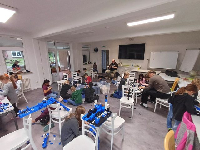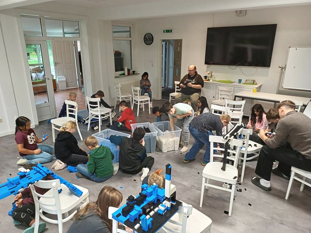 Wie jedes Jahr besucht Tommy zusammen mit unseren LEGO Steinen die Ferienfreizeit des Jugendamtes Wilhelmshaven in Zetel. Da Tommy dieses Jahr doch mal die Ferien für einen Urlaub genutzt hat, sind Jan und Valentin hingefahren. Zusammen mit weit über 20 Kindern wurden aus 2×4 Steinen tolle Modelle gebaut. Das Thema war „Wir bauen eine Brücke auf zwei Stühlen“. Das wurde sehr unterschiedlich angegangen, die Bauwerke waren zum Teil sehr filigran, zum Teil sehr stabil, aber alle haben gehalten. Im Anschluss hieß es „Tiere bauen“. Jan hatte einen Elefanten vorgebaut und die Kinder haben Giraffen, Schildkröten und Affen gebaut. Auch das freie Bauen kam nicht zu kurz.