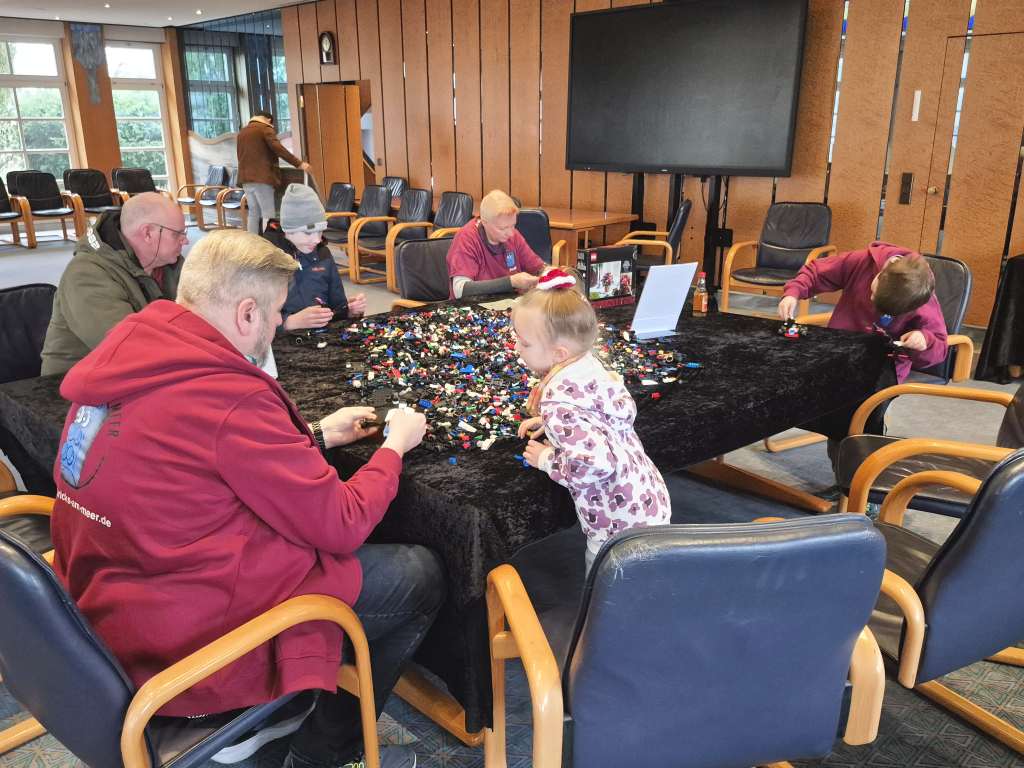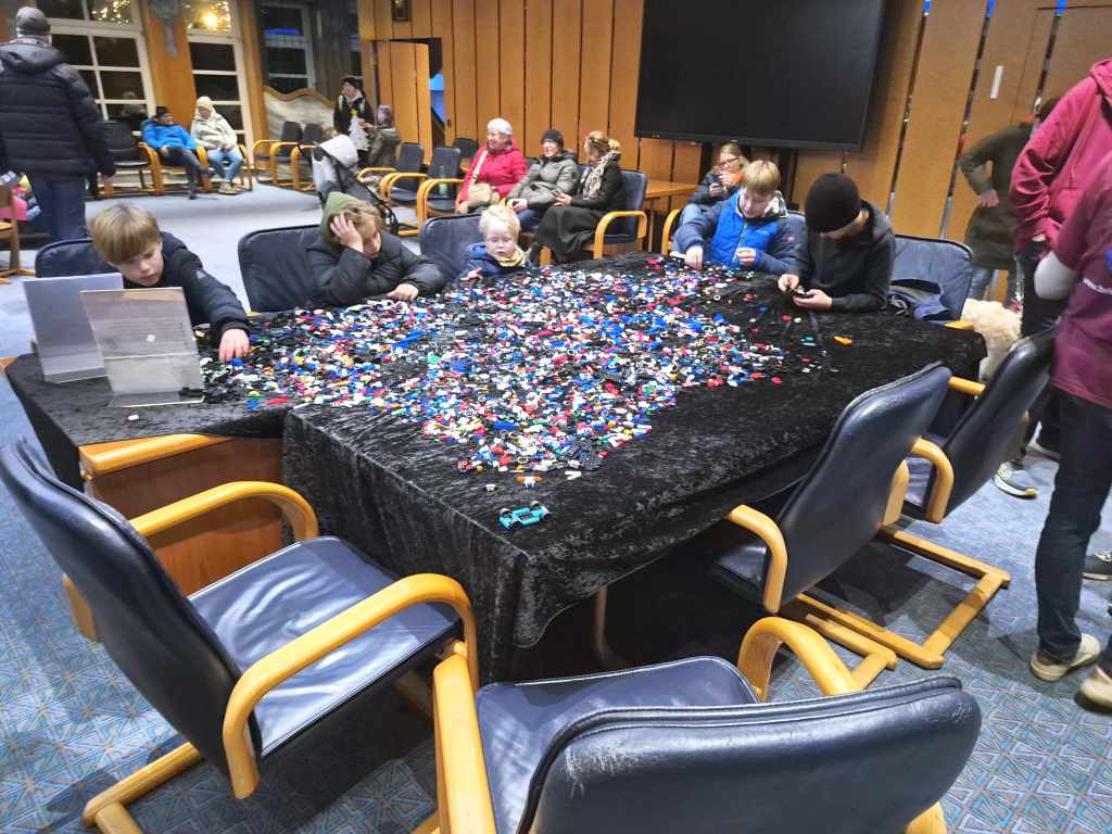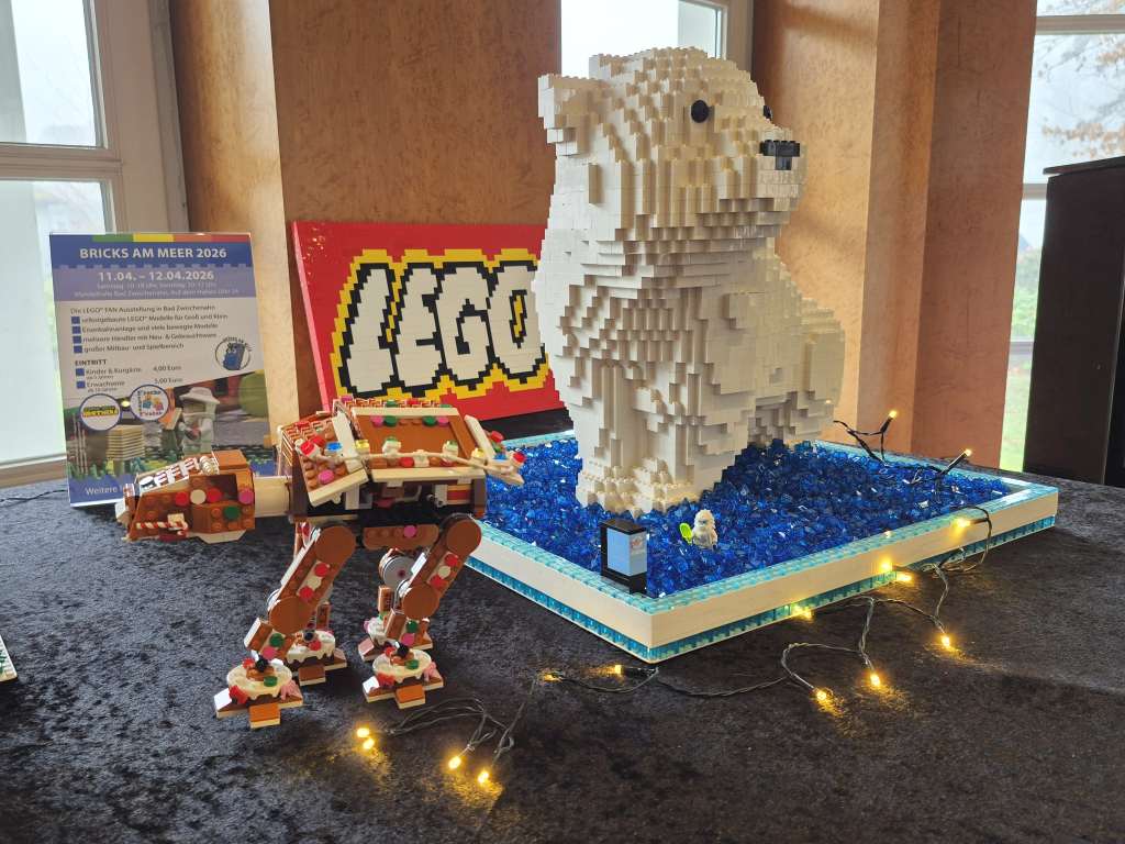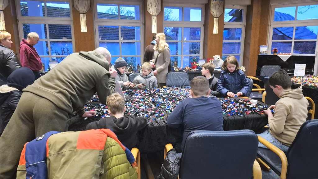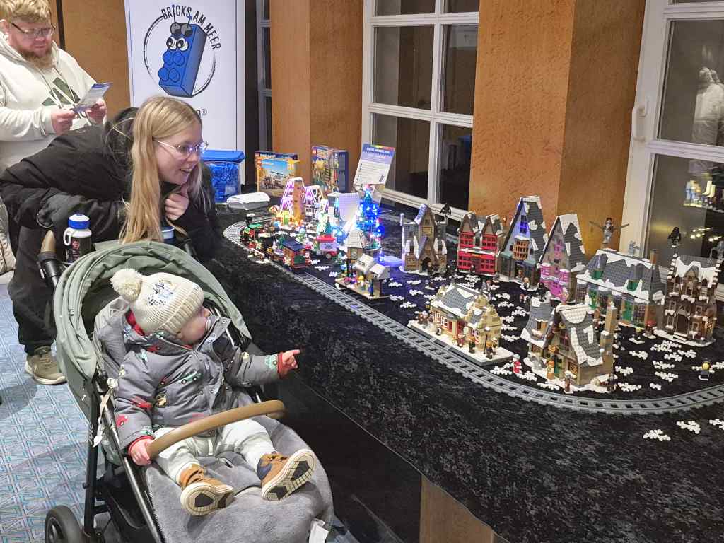 Nachdem es am Freitag ein Kinderkino gab, waren wir zusammen mit der anderen Gruppen am Samstag und Sonntag Angebote zum Mitmachen gestaltet. Neben einem Gewinnspiel gab es weihnachtliche MOCs zu sehen. Unter anderem fuhr eine Eisenbahn, es gab Gebäude aus Hogsmeade zu sehen, ein Eisbär war eingezogen und auch Star Wars fehlte nicht. Highlight waren aber die losen Steine: Neben vielen bunten Steine mit denen Tiere gebaut werden sollten, durften an einem zweiten Tisch Rennwagen gebaut werden.