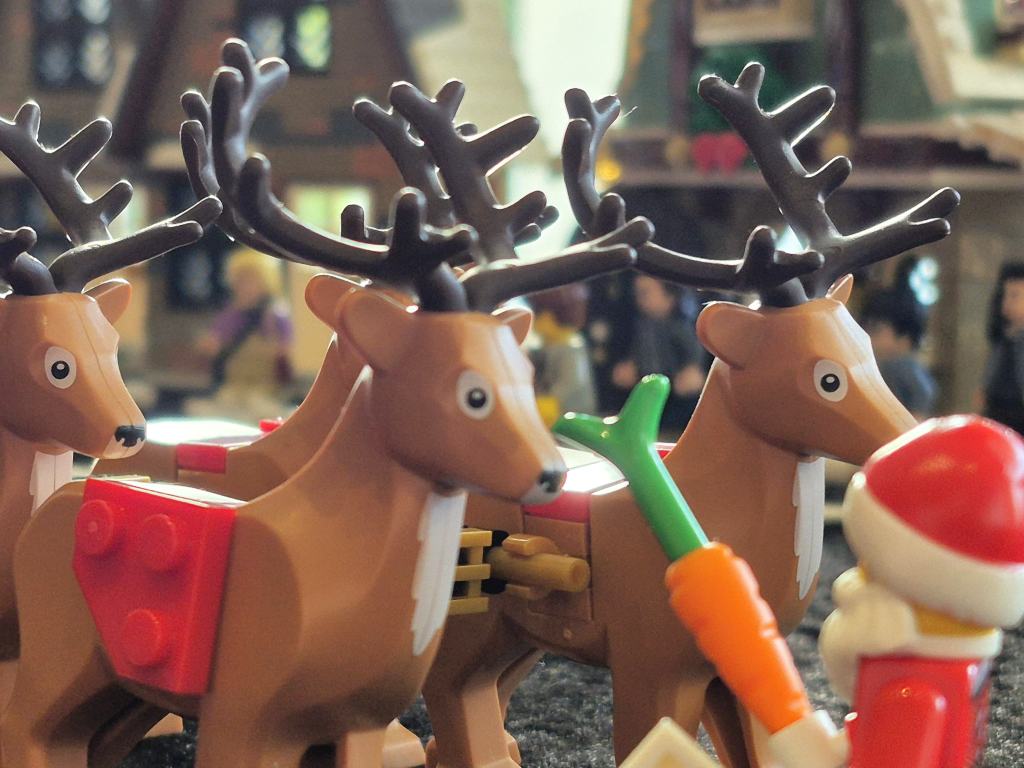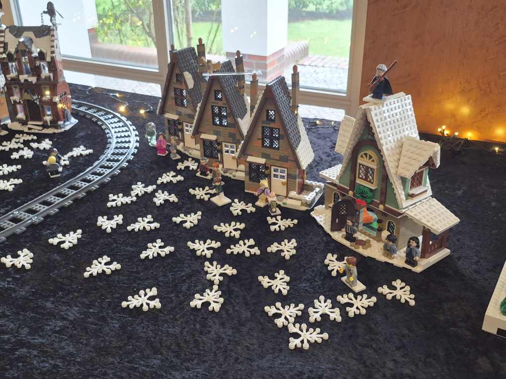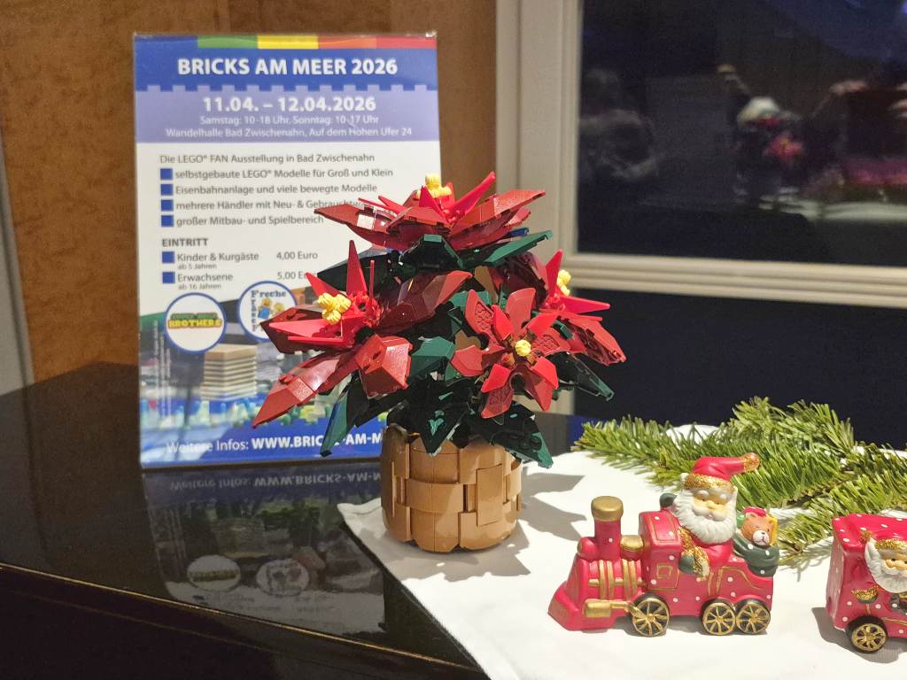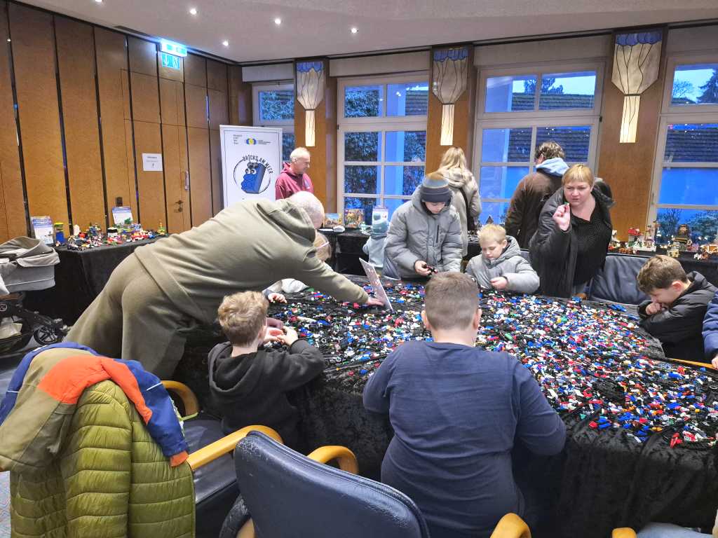 Nachdem es am Freitag ein Kinderkino gab, waren wir zusammen mit der anderen Gruppen am Samstag und Sonntag Angebote zum Mitmachen gestaltet. Neben einem Gewinnspiel gab es weihnachtliche MOCs zu sehen. Unter anderem fuhr eine Eisenbahn, es gab Gebäude aus Hogsmeade zu sehen, ein Eisbär war eingezogen und auch Star Wars fehlte nicht. Highlight waren aber die losen Steine: Neben vielen bunten Steine mit denen Tiere gebaut werden sollten, durften an einem zweiten Tisch Rennwagen gebaut werden.