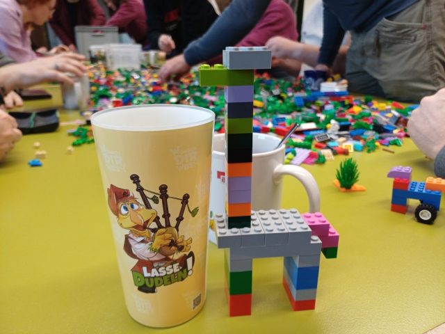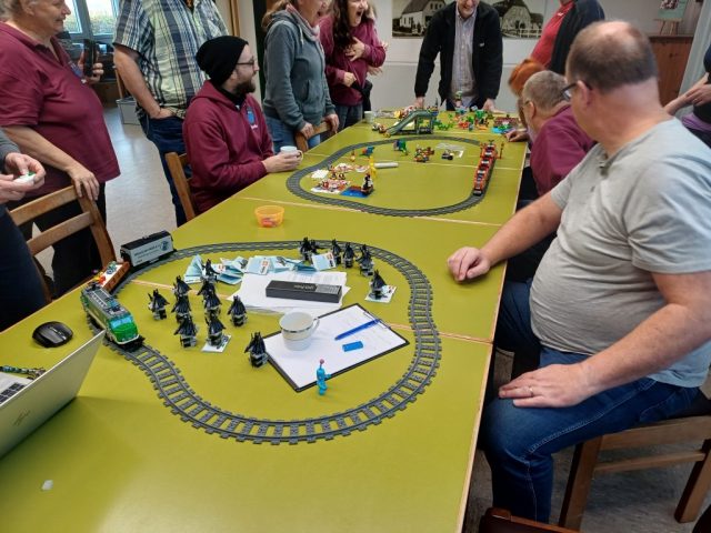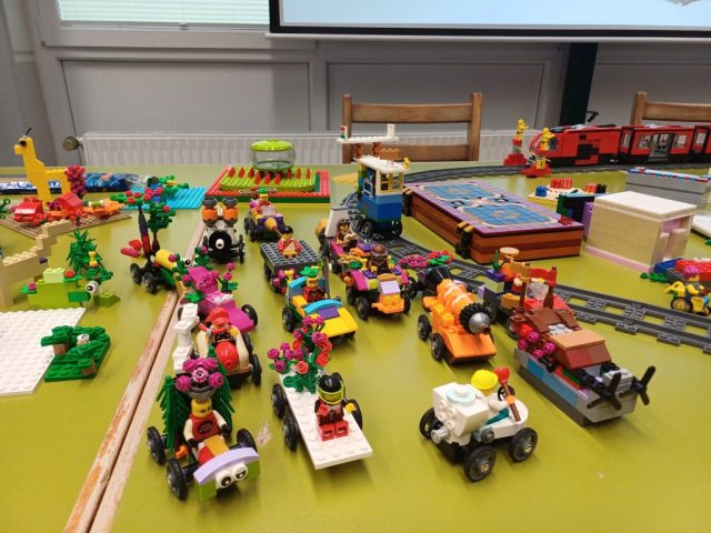 Nach weiteren theoretischen Impulsen folgte eine weitere Mitmach-Idee: LEGO Züge als interaktive Station, an denen Besucher durch Aufgaben die Züge selbst steuern könnten. Auch diese Aktivität sollte neue Perspektiven eröffnen und kreative Denkprozesse anstoßen.